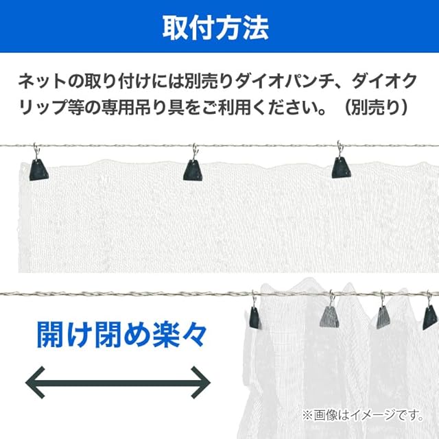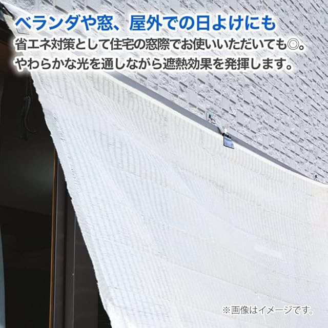 日本製の遮光、遮熱ネット。見た目の明るさは残したまま、温度上昇防止剤の効果で熱線をカットしネット下の環境を整えます。設置には別売りのネット専用吊り具や必要に応じロープ、支柱などをご用意ください。カットすると、切断面の糸がほつれる場合があります。