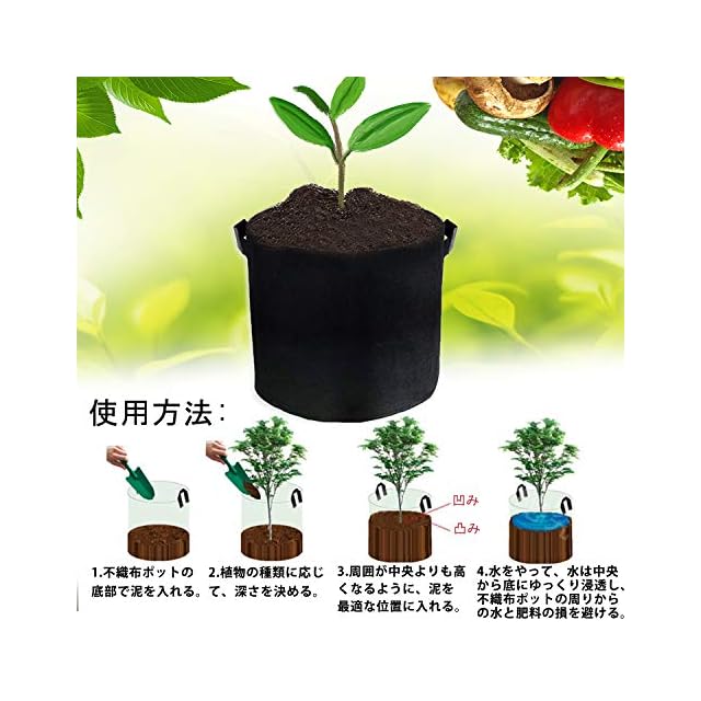✅ 高品質の厚手の不織布と裏地から作られ、通気性、浸透性が良い。植物育成に大きな役に立ちます!再利用可能な分解性材料で、簡単に腐食しない。軽量で、空間を占めない、ベランダや庭には使えます。花や果物などの植物を栽培でき、普通の植物栽培鉢よりもっと便利です。無公害、環境に優しい植え袋です。