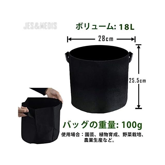 ✅ 素材:環境に優しい不織布、15ガロン、サイズ:高30 X 直径50cm、重量:約209g *2、カラー:ブラック。