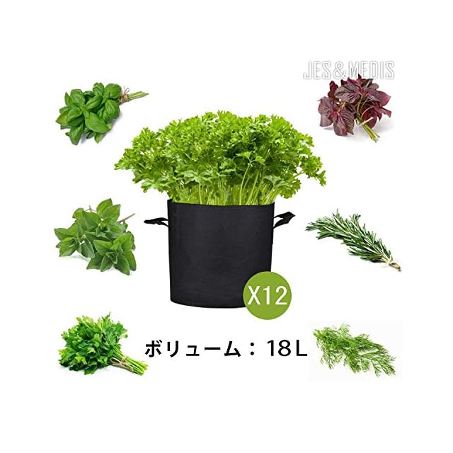 12個セット 5ガロン プランター 布鉢 栽培袋 フェルト 不織布ポット 植え袋 ガーデン 通気性 diy 園芸 植物育成 野菜栽培 大容量 JES&MEDIS (12, 5ガロン_25Hx30D)