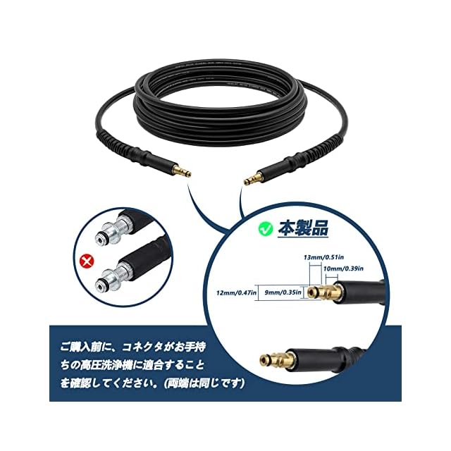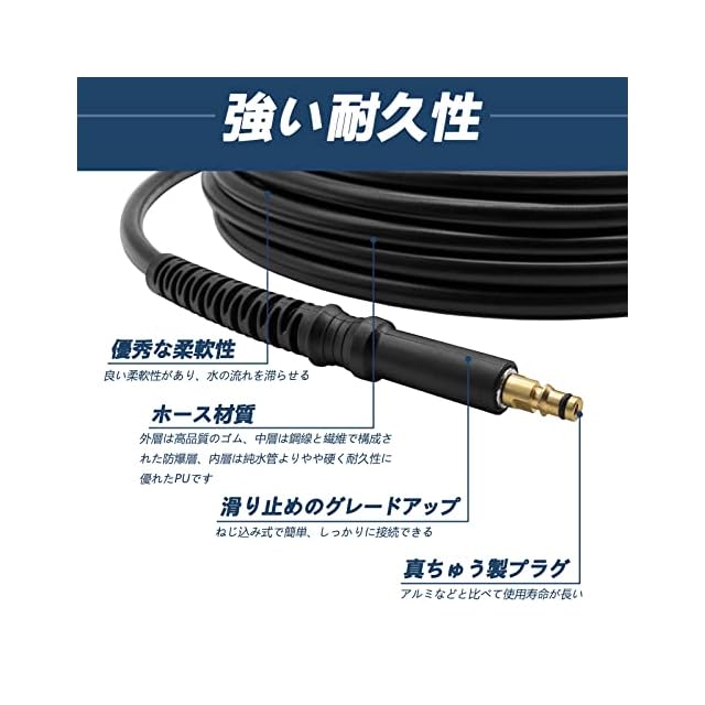 【用途】ケルヒャー高圧洗浄機 ホースはご愛車をピカピカにできるだけでなく、大掃除や家の外壁の洗浄、庭やベランダの苔取りなど、頑固な汚れに効果的です。洗車時等に高圧洗浄機を動かず範囲が広がり、強力な水圧で頑固な汚れもすぐに落とせます。☆ホースがもっと長く延長する必要な場合、弊社のケルヒャー延長ホースと組み合わせて使用できます。