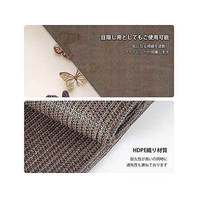 【通気性よい素材】日よけ止めシェードは通気性があり、透けて見えない高密度HDPE素材を採用して、熱い風は庭日除けシェードを通して、涼しい風に変えます。風通しサンシェードはシェードの内側を涼しくします。夏でも外で快適に過ごすことができます。窓サンシェードの素材は形状記憶加工を施し、長年でも変形や色褪せしにくい、美しい外観を保ちます。