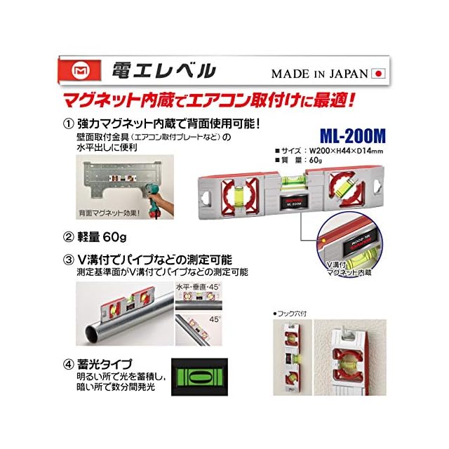 エアコン取付プレートなどの水平出しに便利です。