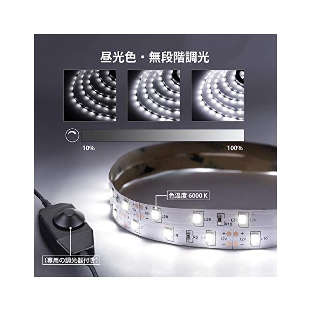 Lepro テープライト ledテープ 10m 昼光色 6000k 無段階調光 ストリップライト 薄型 両面テープ 切断可能 SMD2835 600LED高輝度 正面発光 間接照明 24W 非防水 室内・店内装飾 ledライト | つむぎ屋