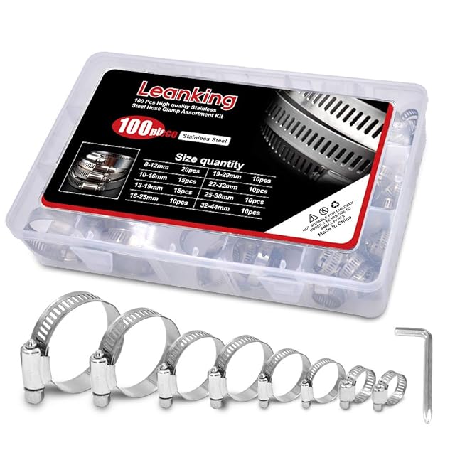 leanking ホースバンド ホースクランプ 100個入り 8サイズあり φ8~44mm対応 調整可能 304ステンレス製 ねじタイプ 強力オールステンレス 手締め用 固定用 配管用 ホース締め金 | つむぎ屋