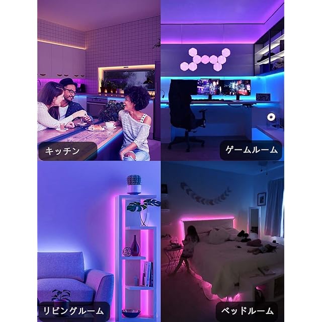 IKERY LEDテープライト 20M アプリとリモコン制御 音楽連動 1600万色 RGB ledライトテープ 調光調色 間接照明 両面テープ付き SMD5050 24V 4ピン 天井 廊下 ゲーム室 屋内装飾用 お祭り クリスマス飾り | つむぎ屋