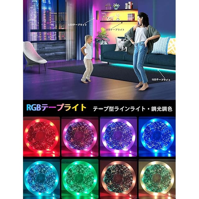 【スマホアプリ制御】リモコン付き以外携帯アプリ操作も対応です。アプリでもっとの色やダイナミックモード点灯モードがあり、たった一本だけでいろいろな色彩要求を満足できます。リモコンでの4つ時間帯に比べてアプリでは24時間を自由に設定できます。アプリのマイクは携帯電話で再生された音楽と外部で再生された音楽を認識し、そして感度を調整することができます。※ご注意:白色はRGB三色から混合してからなったもので、若干青みがあり、LEDの特徴です。弊店では、純白と暖色のストリップライトもご用意しています!詳しくはお問い合わせください!