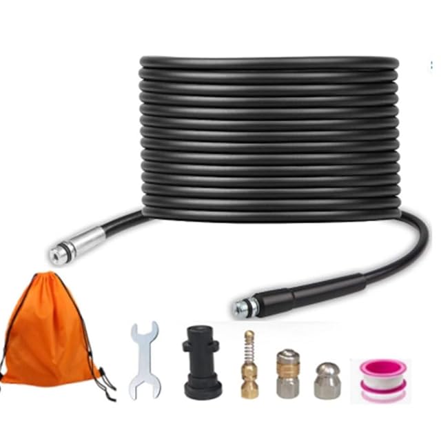 【高品質】ケルヒャー配管洗浄ホースはPVC素材、表面は高品質ゴム、真ん中は鋼線と繊維でできた防爆層、内層はPU素材です。 耐久性があり、柔らかく、ねじれに強い。 ケルヒャー高圧洗浄機洗浄ホースは90度のL字型パイプを通過することができ、ブロック部分を繰り返し押してブロック部分の汚れを取り除き、洗浄を行います。 清掃員の運営費が高く、自分で行うのも非常に安く、清掃が必要なときに取り出して使用することもできます。