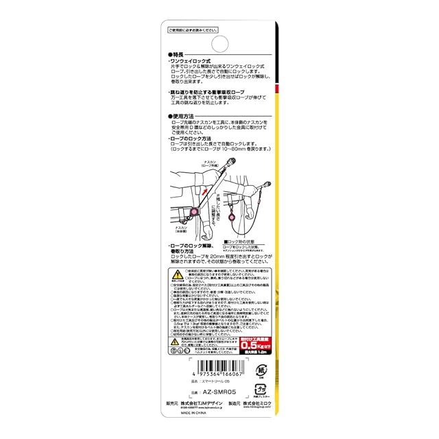 引き出した長さでロープが自動ロックされるワンウェイロック式