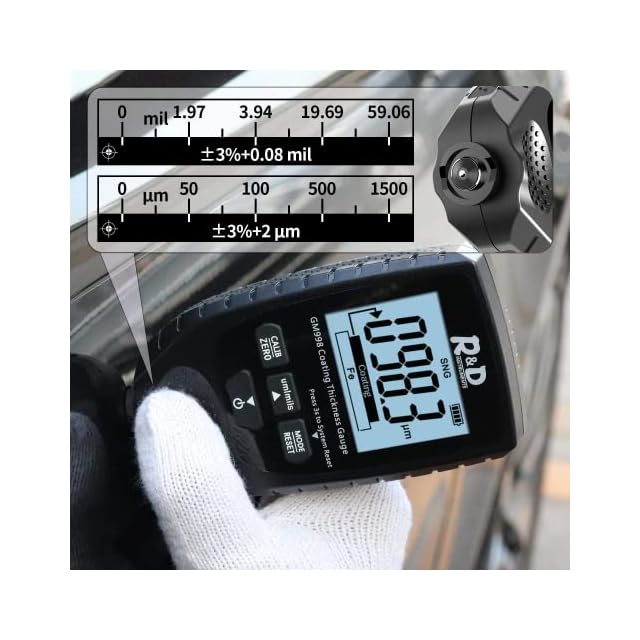多用途で便利な測定ツール 中古車塗装、粉体塗装、アルマイト加工、自転車フレーム、バスルームアクセサリーなど、幅広い分野で使用可能。高精度な測定で、様々な表面コーティングを正確に測定できます。 キーワード: 中古車塗装, 粉体塗装, アルマイト, 塗装検査