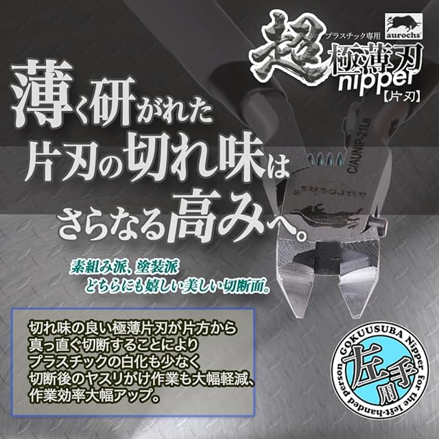 aurochs 超 極薄刃 ニッパー 片刃 精密 プラスチック専用 工具 プラモデル 模型 ゲートカット (グレー&ブラック/左手用)