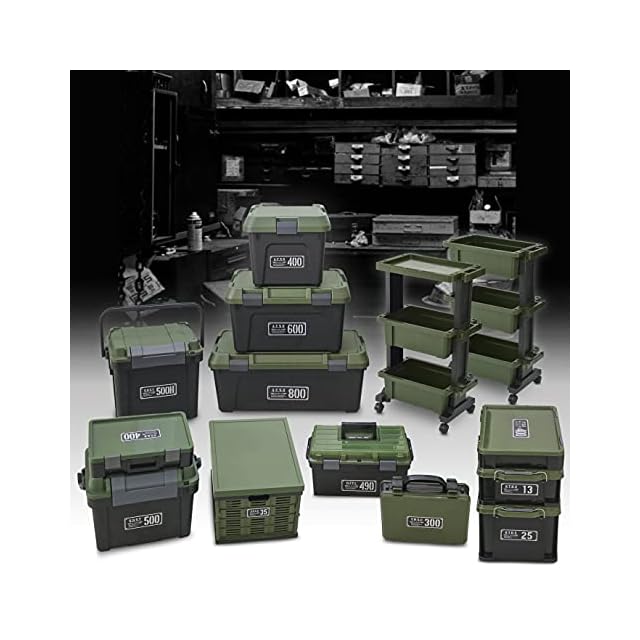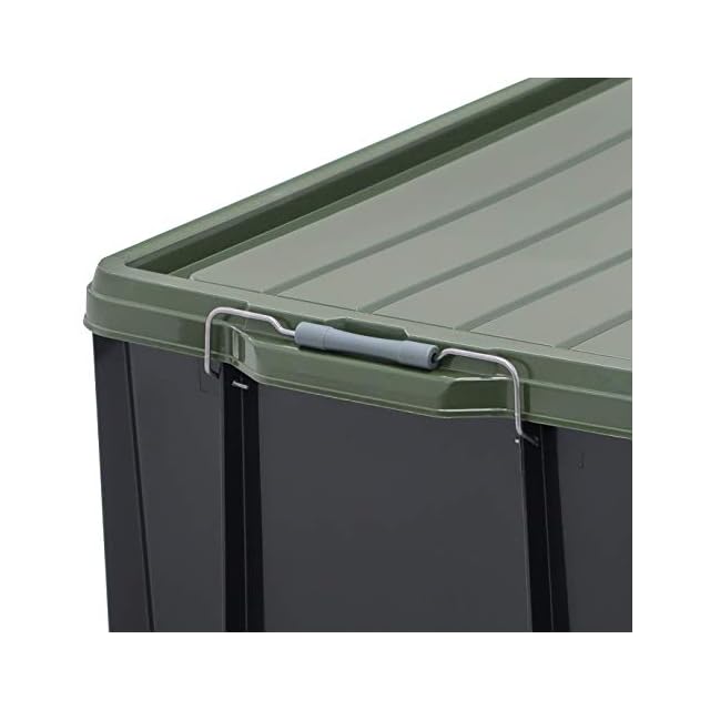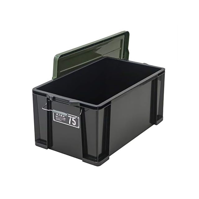 長物工具や大型工具、アウトドア用品などいろいろな収納に便利なワイドタイプのフタ付きバックルコンテナです