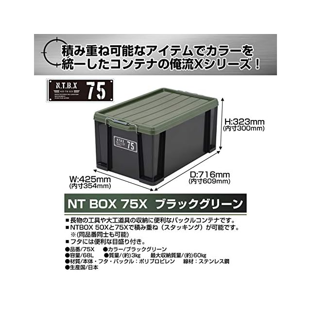 JEJアステージ(JEJ Astage) 収納ボックス 日本製 積み重ね [Xシリーズ NTボックス #75] ブラックグリーン 防災 幅42.5×奥行72×高さ32cm