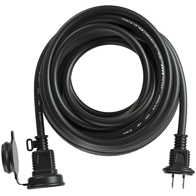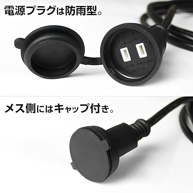 ●イルミネーションや屋外配線や電動工具などに使える防雨型延長コードです。防雨キャップがついていて便利です。庭園、パティオ、デッキ、プールサイドなどの屋外空間での照明、電動工具、屋外エンターテイメントシステムなどの電力供給に使用されます。