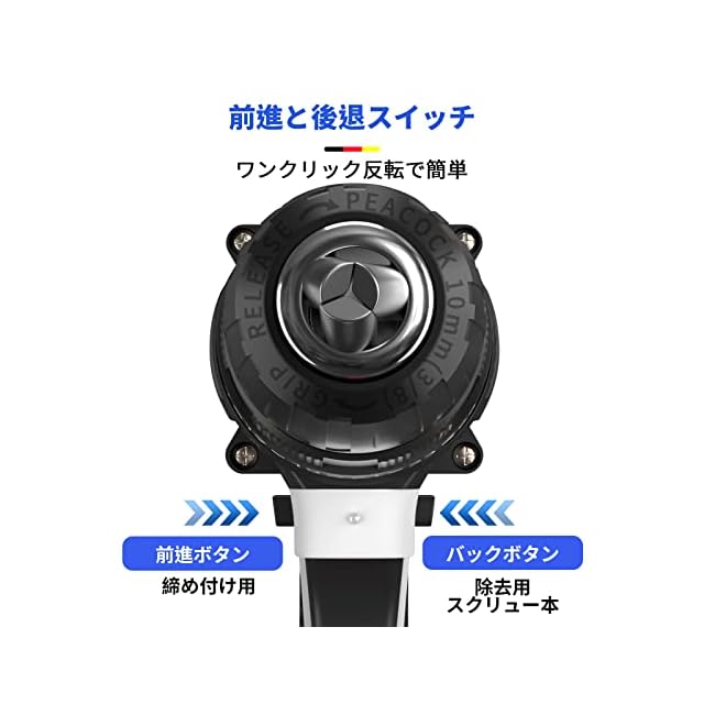 【正逆転ワンタッチ切り替え&安全ロック】 電動ドライバーを持ったまま正逆転切り替えレバーの操作が可能です。レバーを右→中→左に切り替えるだけで、ネジ締め付け→ロック→ネジ外しがカンタンに切り替えられます。使用しないときは正逆転切り替えレバーを真ん中にするだけでトリガーをしっかりロック、不意の誤作動を防ぎます。チャック能力:1.5~10mm。