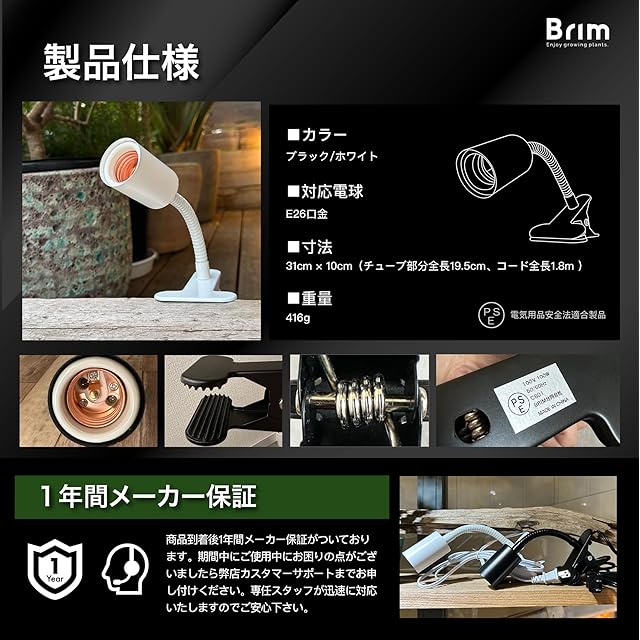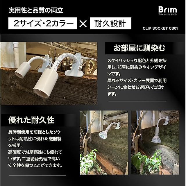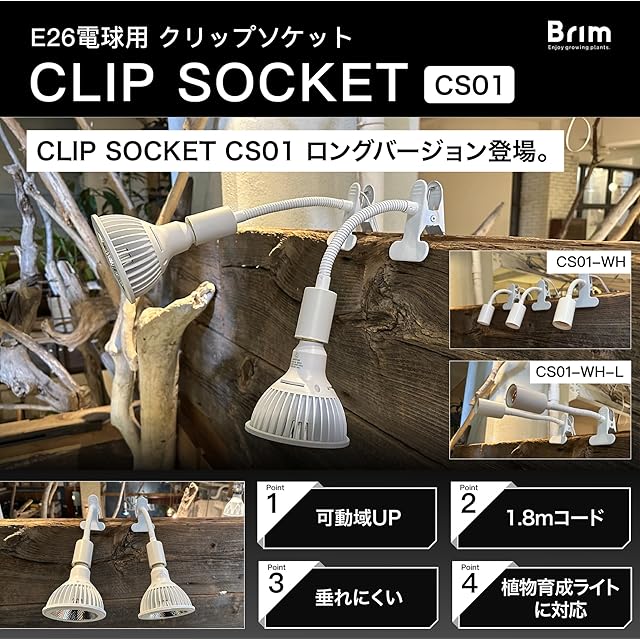 【公式】BRIM (ブリム) クリップソケット E26 電球ソケット 【国内ブランド】植物育成ライト 対応 1.8mコード スイッチ付 CLIP SOCKET (CS01-WH-L ロングバージョン(ホワイト)) | つむぎ屋