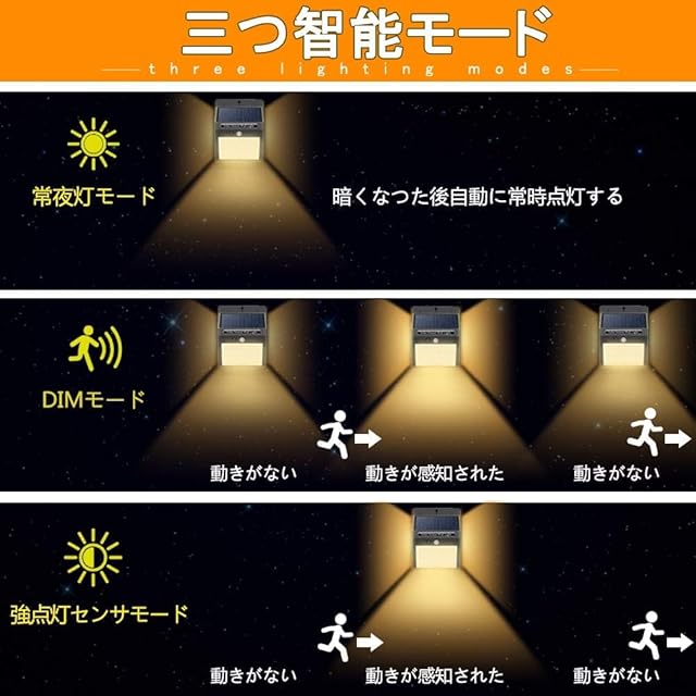 【三つの点灯モード・2800mAh大容量】常時点灯モード、DIMモード、自動点灯センサーモード三つの知能モードがあります。動きを検知できる人感センサーと明暗センサーが搭載されて夜になると自動的に点灯します。玄関や家の周りに明るい照明効果を提供だけではなく、停電、地震、台風など災害時に非常灯としても使えます。