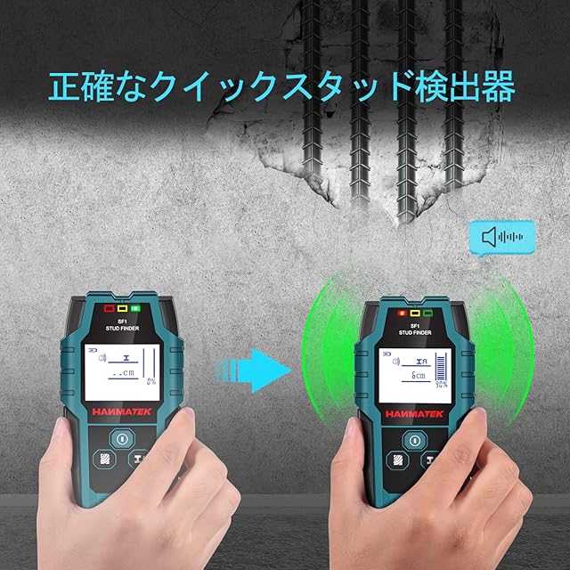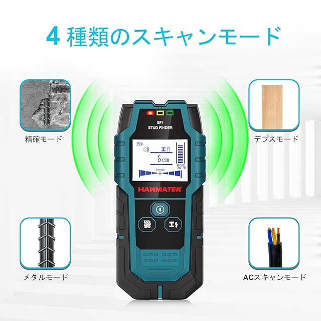 HANMATEK 下地探し 下地センサー 下地チェッカー 壁うらセンサー 深度距離表示 五合一アップグレード木材精密モード両頭ボルト探索ツール、金属中心縁、両頭ボルトと交流電線、壁パイプ位置決め器に使用 (SF1) | つむぎ屋