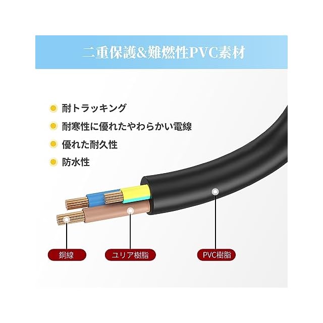 【熱に強い材質】延長コード 5m 3分岐はPVC難燃性材料、ユリア樹脂高品質の材料に使用されるため、数千回以上を折り曲げても、損傷や性能の差異は見られません。電気火災を防ぐことができるという特徴もあります。最高の耐久性を実現し、冬でも柔らかくて収めやすい。
