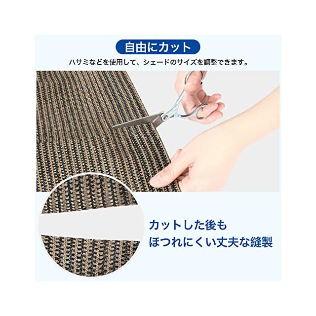 【通気性よい高密度HDPE素材】弊社のバルコニーシェードは従来の1当たりの重さが185gの生地で作られたベランダシェードとは違い、重さが220gの生地を採用しており、かなり遮蔽されて遮光率ももっと高くなります。生地の特性上、暑さをしっかり軽減できます。通気性に優れているため、風を通しやすいのも特徴です。目隠し シェードの素材は形状記憶加工を施し、長年でも変形や色褪せしにくい、美しい外観を保ちます。