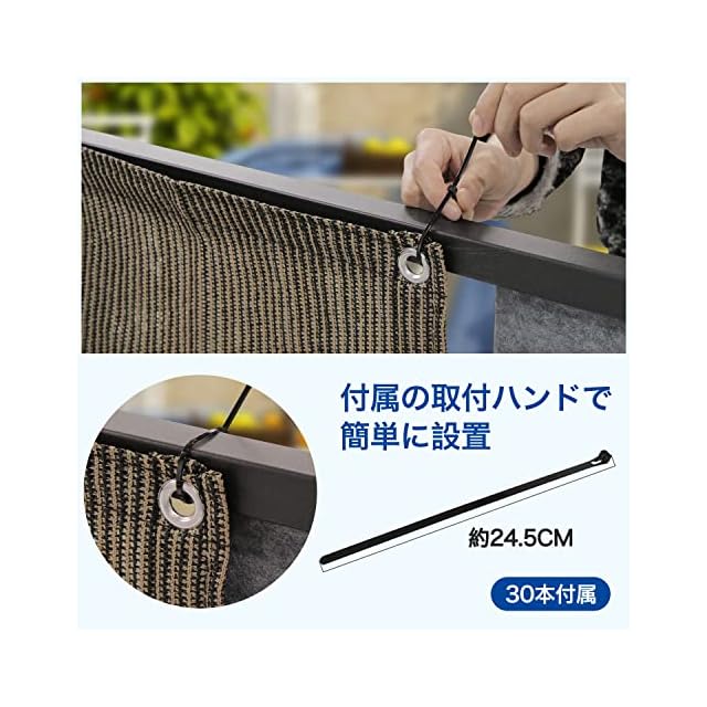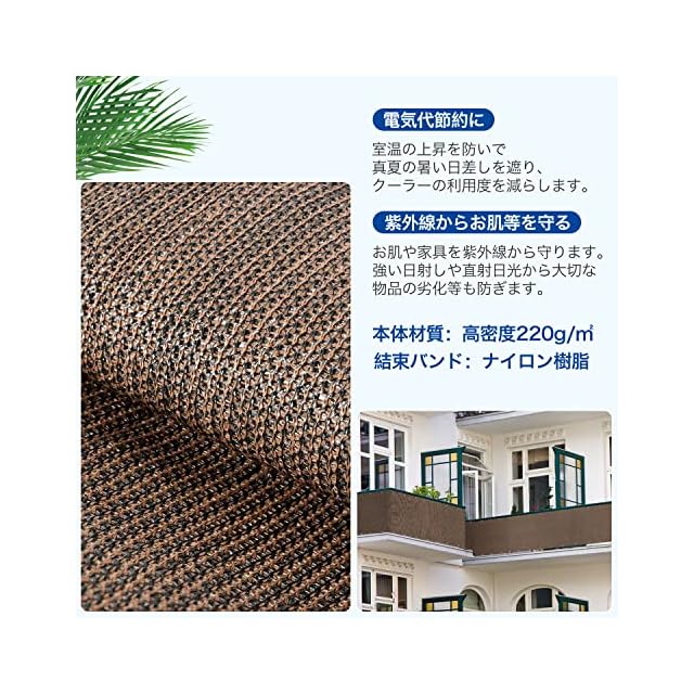 【バルコニーシェード仕様】材質:220gの高密度ポリエチレン(HDPE)、カラー:モカ、結束バンド30本付き、固定用ロープ1本付き。付属品は黒色なので違和感はありません。もしご使用中何かご問題があれば、いつでもお気軽にご連絡ください。★お問い合わせ案内:注文履歴>出品者へ連絡>お問い合わせの内容を記入。