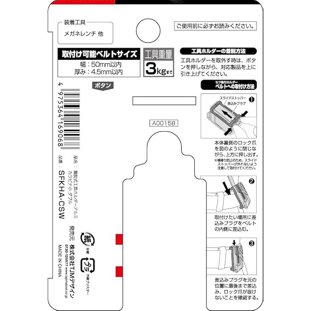 タジマ セフシステム 着脱式工具ホルダー 軽量アルミ カラビナ小 ダブル SFKHA-CSW 着脱楽々 ベルトに後から装着可能 腰道具の組み換えが簡単 使う道具だけを選んで装着 腰の負担軽減 工具の落下防止 | つむぎ屋