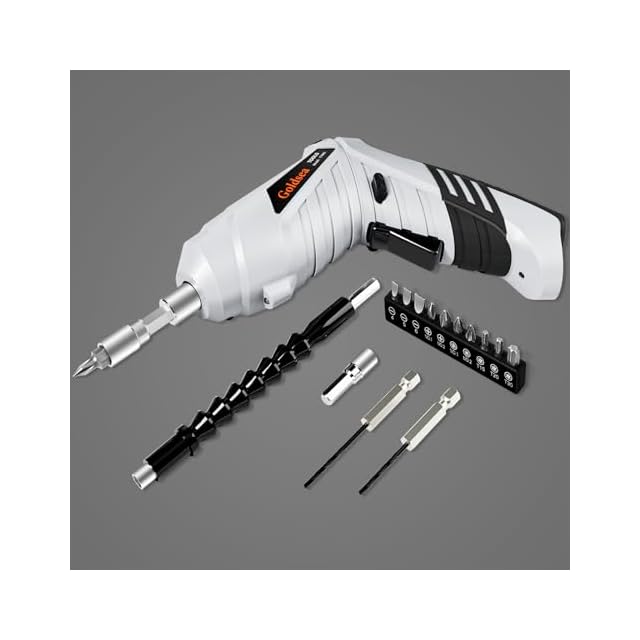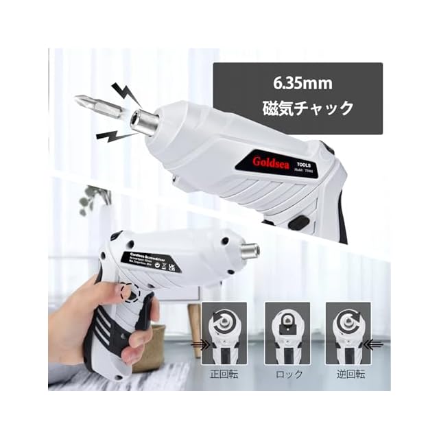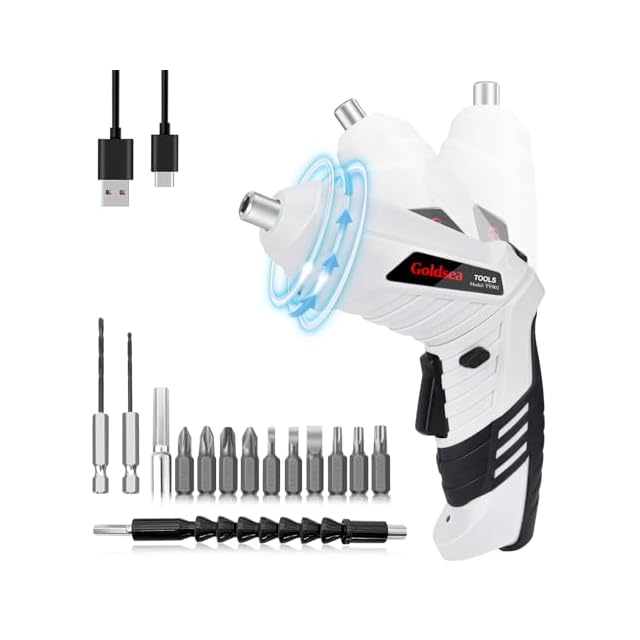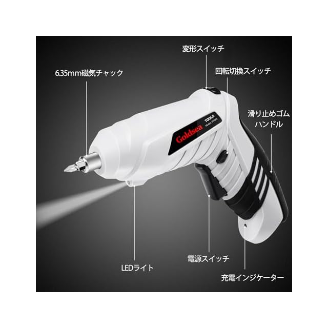 Goldsea 電動ドライバー 小型 4.2V 3.5N.m 正逆転切替 変形ハンドル 1500mAh Type-C充電 連続使用時間60分 10本ビット LEDライト付き コードレス 軽量 DIY 家具組立 家庭用 初心者向け 日本語説明書 (白)
