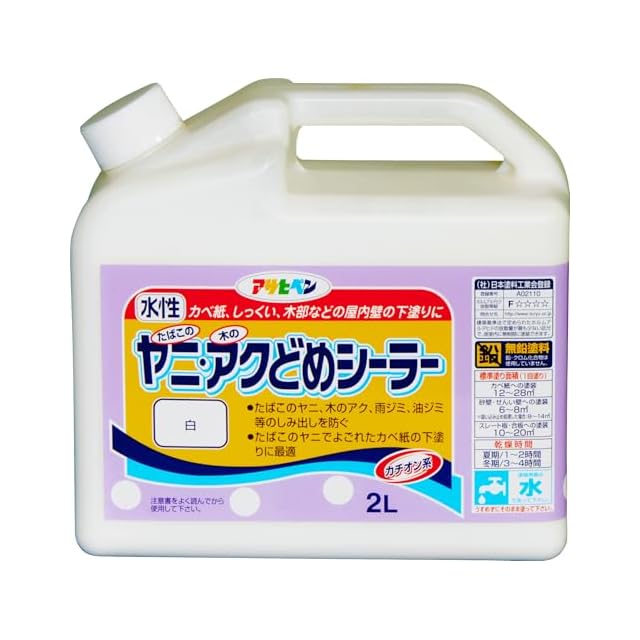 たばこのヤニ等でよごれたカベ紙の上にも塗れる下塗り剤です。
