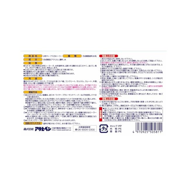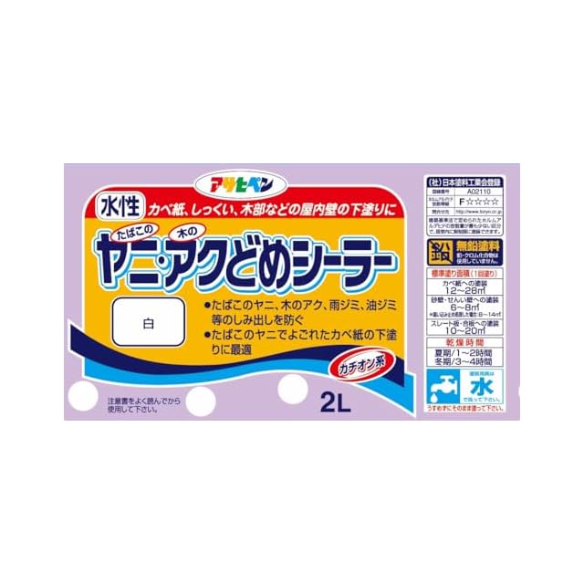 用途:(屋内外区分:屋内用)●たばこのヤニやシミ、アクの出た面(カベ紙、コンクリート、モルタル、スレート、木部、砂壁、せんい壁、旧塗膜面)の下塗りに。