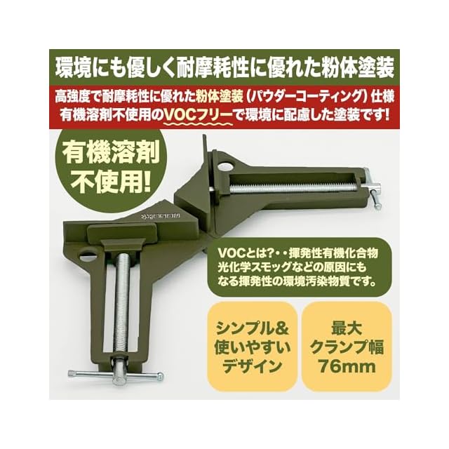 【一人DIYの強力な助っ人!】2つの材料を接合するときは誰かに材料を押さえて欲しいもの。コーナークランプがあれば一人でも高精度に加工が行えます。品質管理を徹底し、一般のお客様はもちろん、工務店様、職人様など、多くのお客様からご好評の声を頂いております。