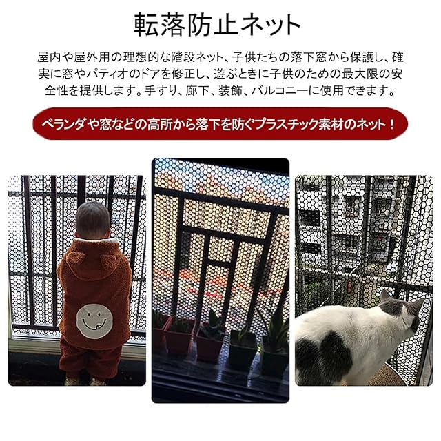 【安全デザイン】屋内や屋外用の理想的なフェンスネットネット、子供たちの落下窓から保護し、確実に窓やパティオのドアを修正し、遊ぶときに子供のための最大限の安全性を提供します。手すり、廊下、装飾、バルコニーに使用できます。