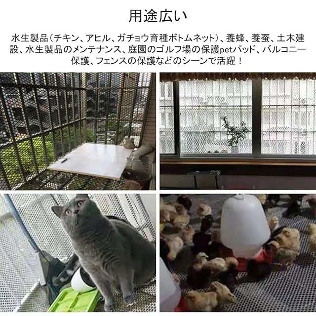 【幅広い用途】水生製品(チキン、アヒル、ガチョウ育種ボトムネット)、養蜂、養蚕、土木建設、水生製品のメンテナンス、庭園のゴルフ場の保護petパッド、バルコニー保護、フェンスの保護などのシーンで活躍!ペットのゲートウォールプロテクターとしても使用できます。