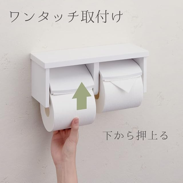ぺーパーを2つ収納できるダブルタイプ。ペーパーの減りが早い大家族や在宅時間の長いご家庭にもおすすめです。シングルロールとダブルロールの使い分けや、ストックとしてご使用いただけます。