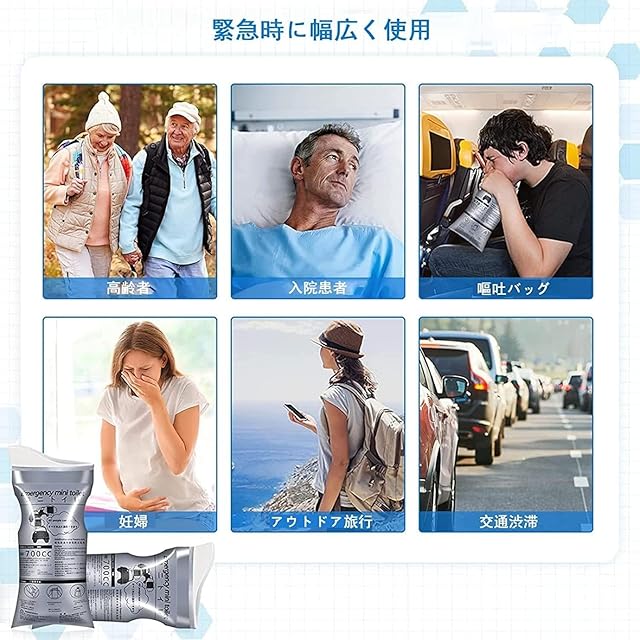 【ただのミニトイレではない】渋滞、車酔い、旅行、遠足や露営の時に、こちらのエチケット袋は緊急用ミニトイレや嘔吐袋などとして使用可能。女性も男性も、お子様或いは患者さんにも非常に適している旅行用ミニトイレです。