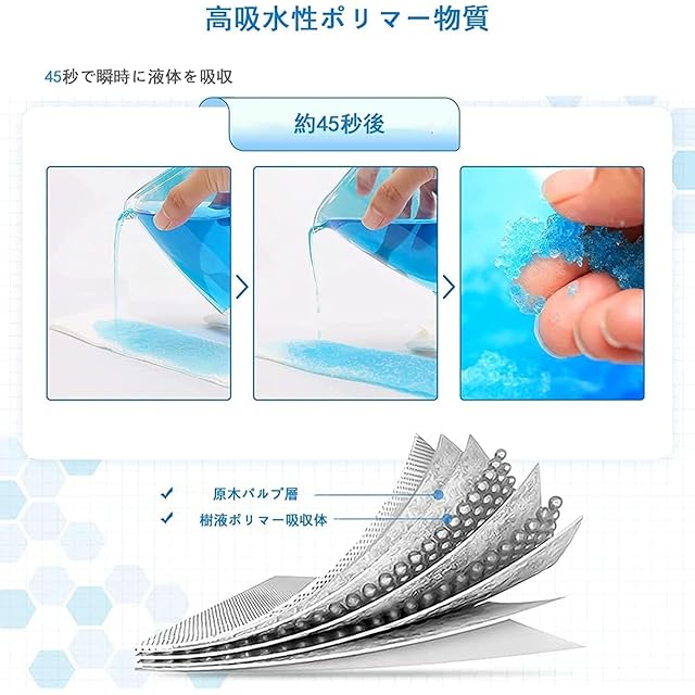 【45秒以内に吸収可能】こちらのミニトレイはSAP吸水ポリマーを使用しています。おしっこ、嘔吐物やその他の液体廃棄物を吸収して、臭いを消して、無臭で飛び散らさないジェルに変わります。45秒以内にしっかり液体を吸収して、すぐ固まります。