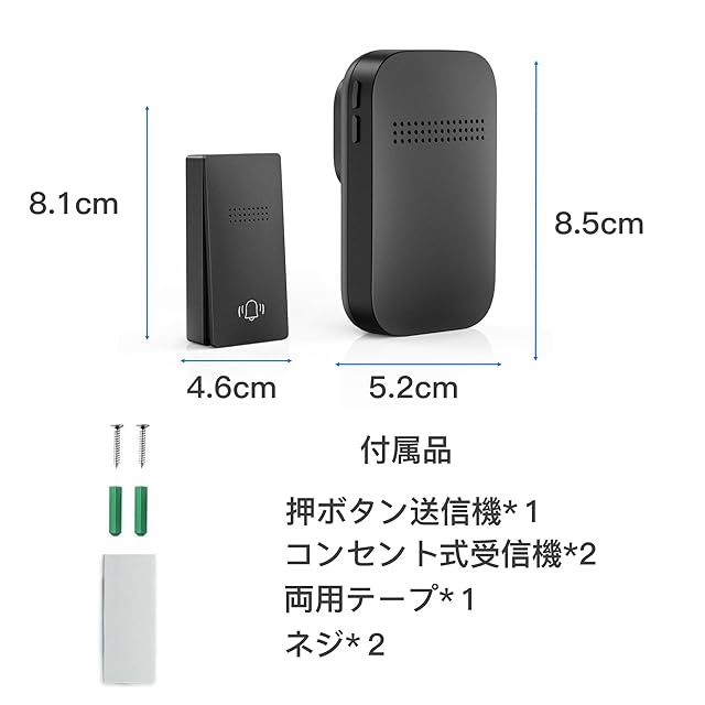 【増設自由&多用途】1つの送信機が複数の受信機に接続可能。1つの受信機も複数の送信機に接続することもできます。送信機と受信機を任意に組み合うことができ、2対2、3対2などが実現可能です。 来客時の玄関チャイム、介護、御店や事務所での連絡や呼び出しに様々な場所にご利用できとして大活躍です。 お年寄り、子ともや体の不自由な方のチャイムとしてもおすすめです。
