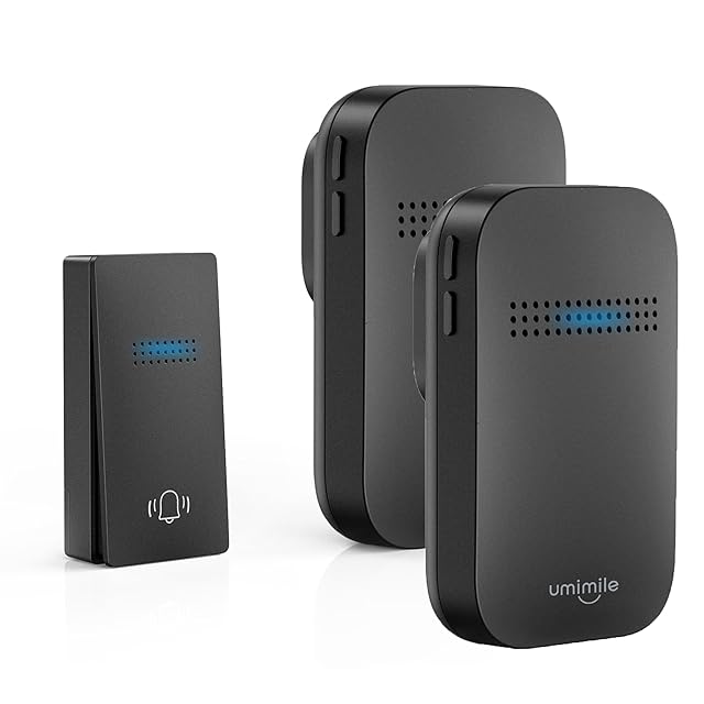 Umimile ワイヤレスチャイム 自動発電 玄関チャイム 電池不要 防水防塵 工事不要 38曲メロディー 4段階音量調節 メモリー機能 防水防塵 ドアベルチャイム 介護/飲食店/玄関 150M範囲(1T2, ブラック) | つむぎ屋