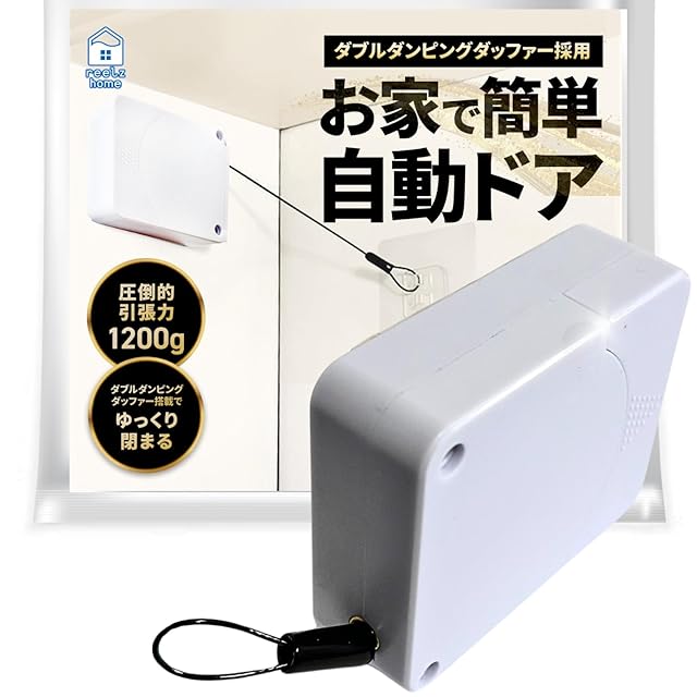 リールズホーム ドアクローザー 1200g 引き戸 室内 オートロック ゆっくり閉まる 自動で閉まる ドア クローザー 調節機能 玄関 後付け ワイヤー スライドドア 【毎日新聞掲載】 (ホワイト1200g)