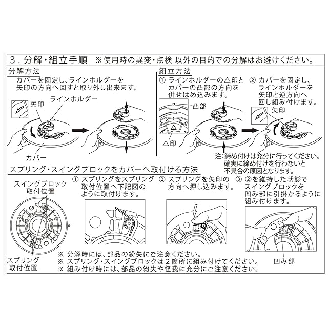 【ヘッドの分解不要!超カンタンなコード交換】 本製品は刈払機に付けた状態でコード交換が可能!手間いらず。 コードを入れて数回カチカチ回すだけ※実は…国内刈払い機の2大巨頭、マキタ・山善の ナイロンカッターヘッドは弊社ダイアトップが製造しています!