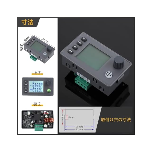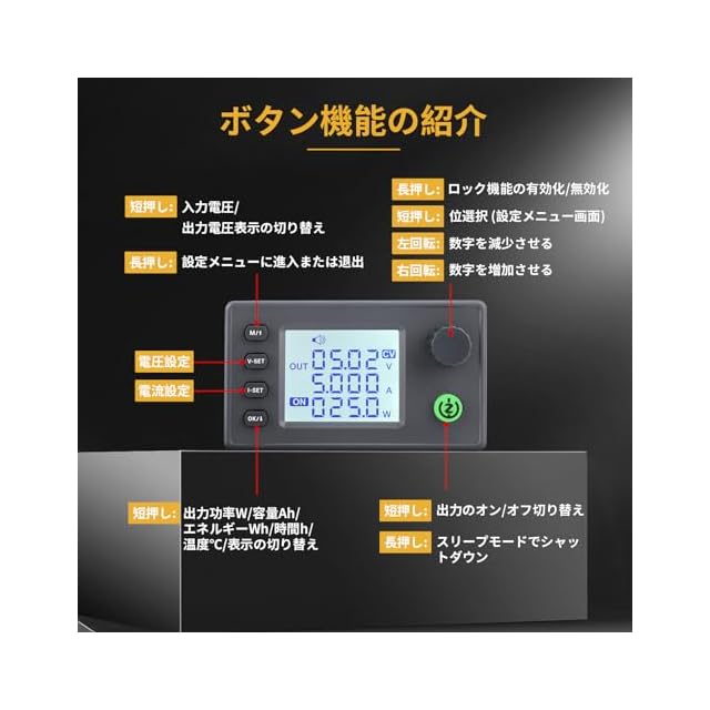 【製品仕様】入力電圧範囲:DC6-36Vに対応し、出力電圧:DC0.5-36Vおよび出力電流:0-4.5Aが調整可能です。出力電力は40Wで、これにより、様々なアプリケーションにおいて安定した電力供給が可能です。