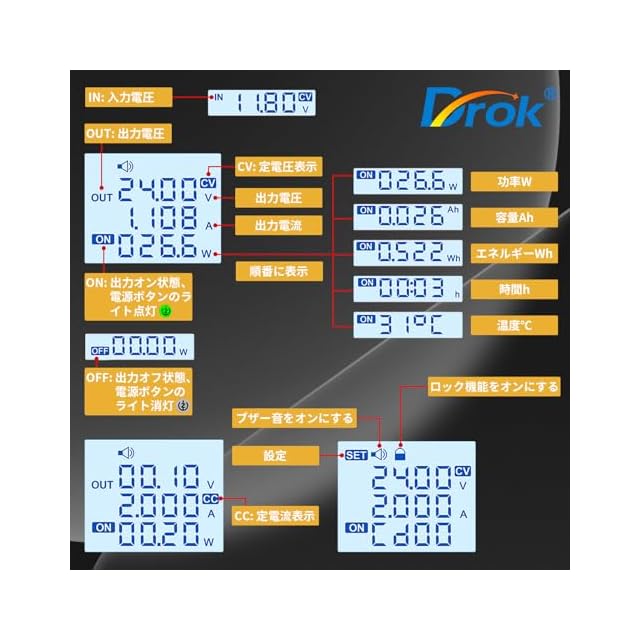 DROK 昇降圧コンバータ DC-DC 6-36Vから0.5-36Vへ 0-5A 90W 降圧昇圧電圧レギュレーター CC CV昇降圧調節可能 安定電圧電源モジュール LCD表示 電圧電流 | つむぎ屋