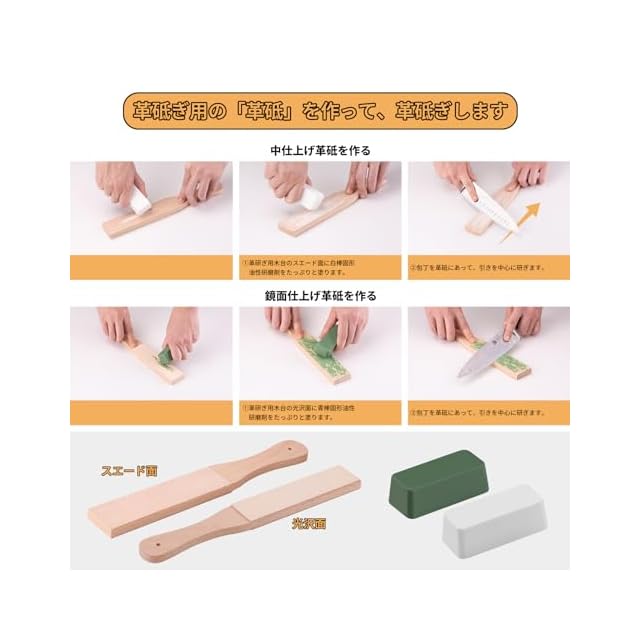 【革砥ぎ用の革砥付き】:この研ぎ石は、革砥ぎ用の白棒青棒固形油性研磨剤と革研ぎ用木台付きので、革砥ぎができます。または、万能砥石台つきので、従来のゴムの滑り止めと比べ、研いでいる最中に包丁が手元からずれて大事故になるのを防げます。とても安心てきます。※重要事項※本砥石台は、当社オリジナル商品となっており、コピー対策として外観の意匠登録申請済みです(意匠登録番号第1747826号)。