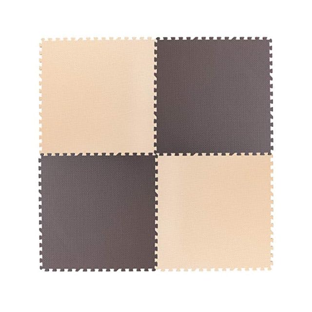タンスのゲン ジョイントマット 43cm 厚み10mm 3畳用 24枚組 防音 保温性 床暖房対応 ノンホルムアルデヒド 赤ちゃん プレイマット フロアマット サイドパーツ付き ブラウン×ベージュ 31800033 01 【74159】 | つむぎ屋