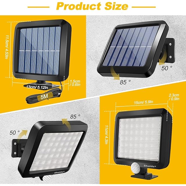 ☀分離式のソーラーパネル:従来のソーラーランプと比較して、ソーラーパネルをランプ本体から分離しています。付属の5m / 16.5ft防水ケーブルを使用して、日当たりの良い場所にソーラーパネルを設置できます。日中は電力を節約し、夜は長くて明るい光を生成します。