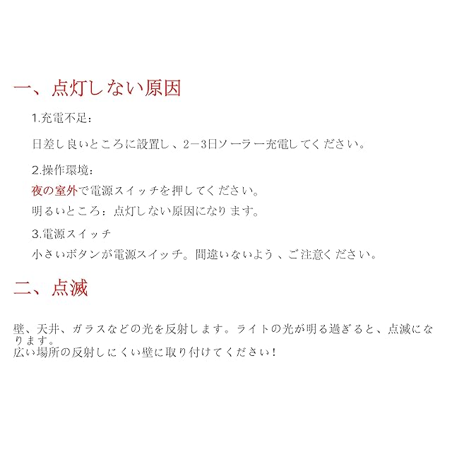 ☀簡単な取り付ける方:付属のネジを使用して、配線なしで壁にソーラーライトを簡単に取り付けることができます。理想的な取付高さは1.8〜2.5 mです。