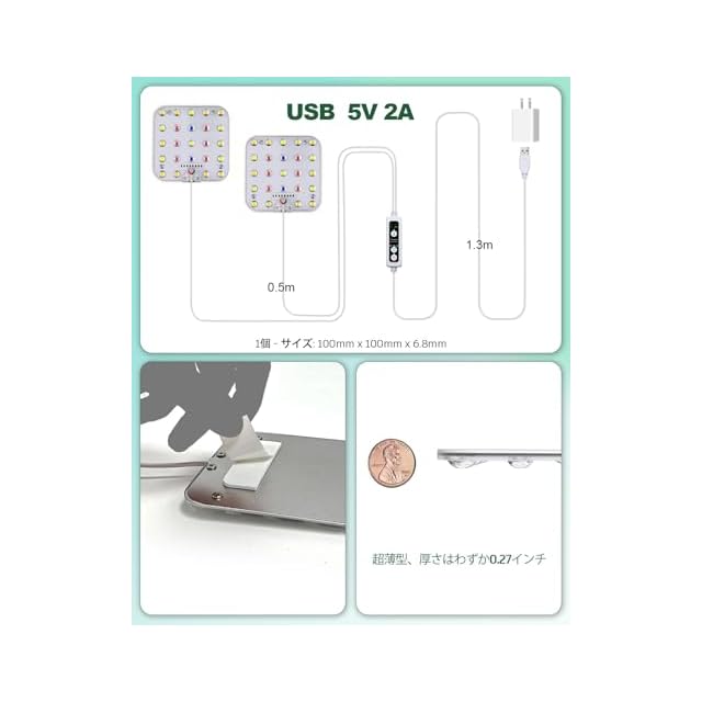 省スペース設計-省スペースでスタイリッシュな設計により、私たちのブリム 植物育成ライトはあなたの室内植物設定とシームレスに融合します。各成長ランプパネルのサイズは10(縦)x 10(幅)x 0.63(高さ)cmで、構造がコンパクトで管理しやすい。電源ケーブルの長さは1.8メートルで、室内空間に設置するのに便利です。