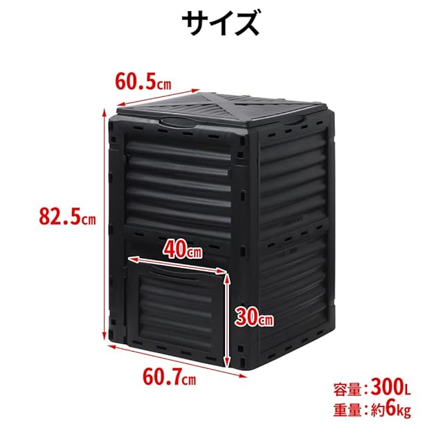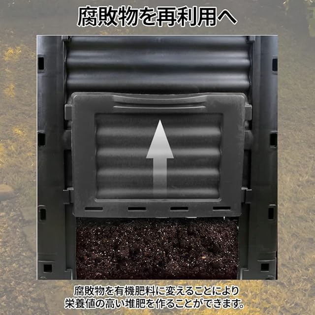 ・誰でも簡単に使用可能/上蓋から廃棄物を加え、約2~3ヶ月待てば発酵できます。知識のない方でも手軽に栄養値の高い堆肥を作り出せます。組立も工具不要のため、はめ込むだけで出来上がり!