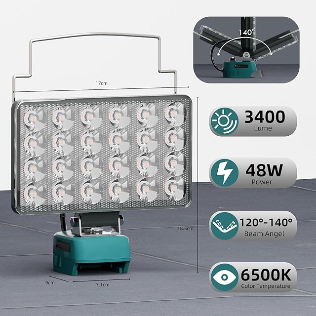 【16個のLEDチップ】このアップグレード版LEDランプは、より広い面積をカバーする照明を強化し、5.0 AH電池は8 ~ 12時間点灯することができる。2つの照明モードは自由に調整でき、低輝度はエネルギーをより節約でき、高輝度はより多くの照明ニーズを満たすことができます。140°回転ヘッド設計により、必要に応じて正確な作業領域に光を当てることができます。