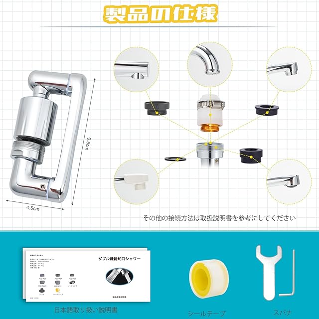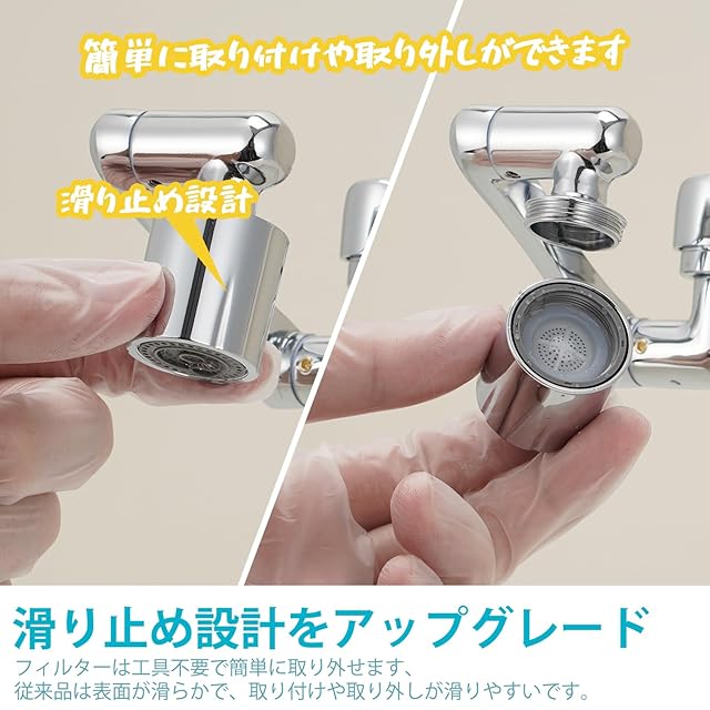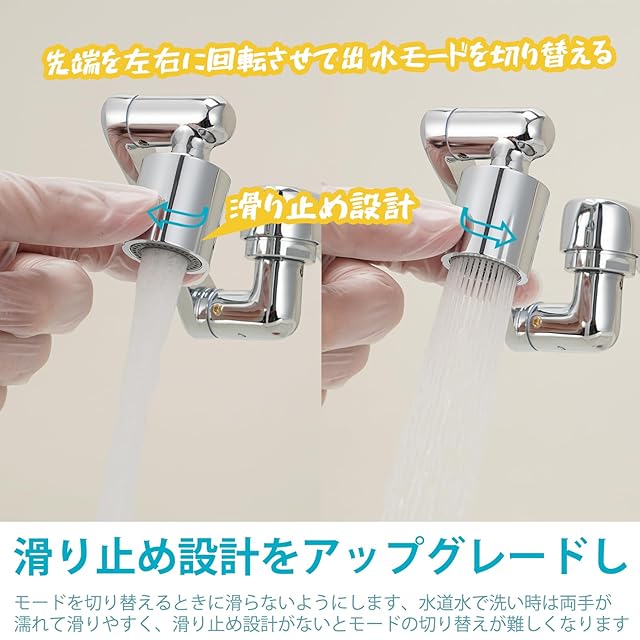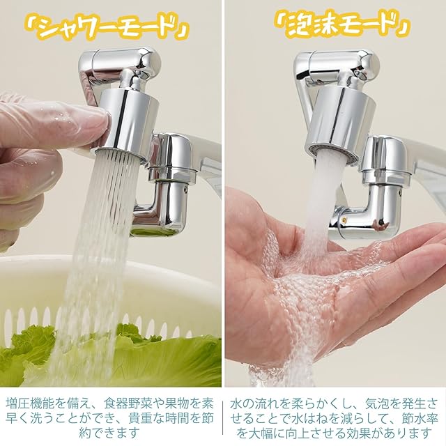 「2つのモード」従来の蛇口に取り付けられるだけで、吐水口のヘッドを回転させると、泡沫とシャワーモードを手軽に切り替えられます