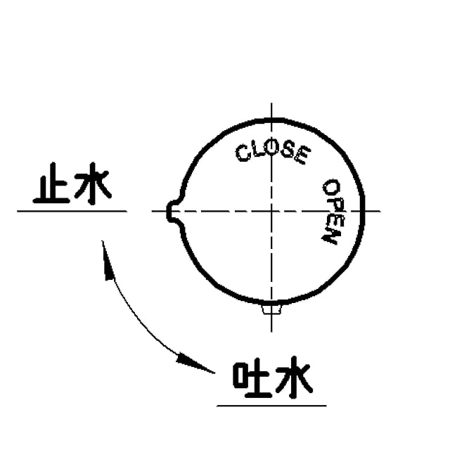 90度開閉なので出し止めが楽に行えます。メッキ仕様のハンドルに吐水、止水の表示付き。